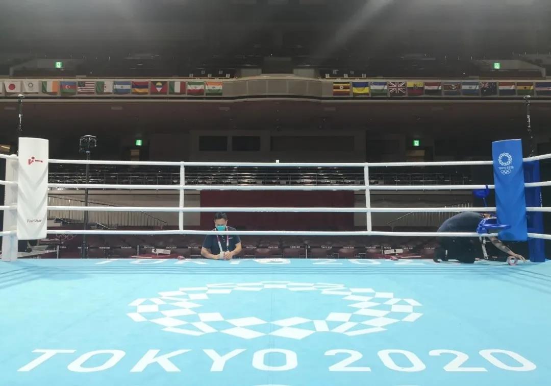 2021年7月21日,日本东京国技馆——奥运会拳击比赛馆。PG电子·(中国)官方网站体育东京奥运会服务保障团队正在检查调试拳击器材。